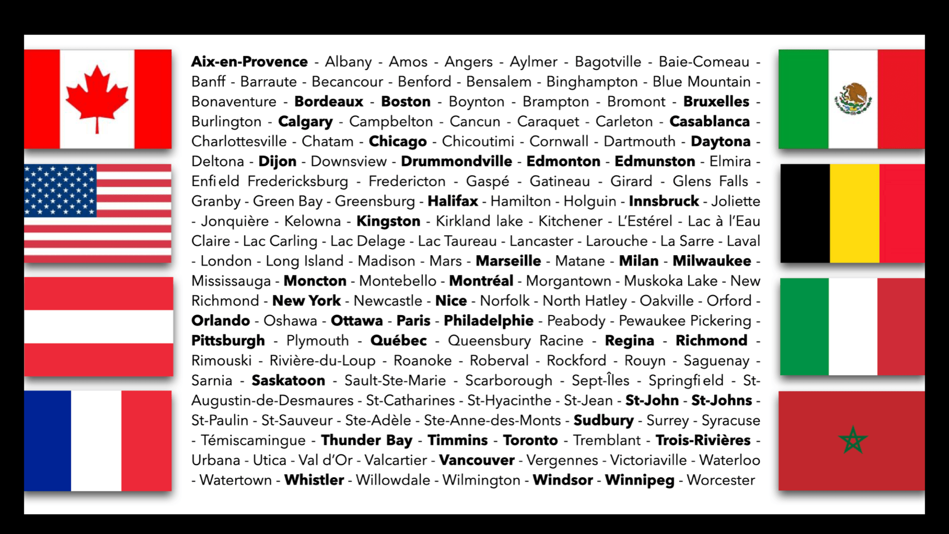 Grâce à vous, depuis plus de 3000 conférences en 25 ans, mon métier m’amène à aller à votre rencontre, à découvrir villes et villages, cultures et sous-cultures, partout à travers le Québec, le Canada, l’Amérique, l’Europe et l’Afrique du Nord.