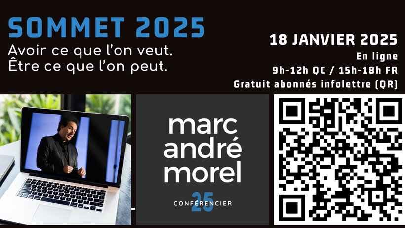 Marc André Morel est auteur de plusieurs best-sellers sur les thèmes du perfectionnement personnel et de carrière, dont les livres suivant «La cinquième saison», «Pour le meilleur de soi», «Développer la meilleure version de soi-même» et «Café, croissance & cie».